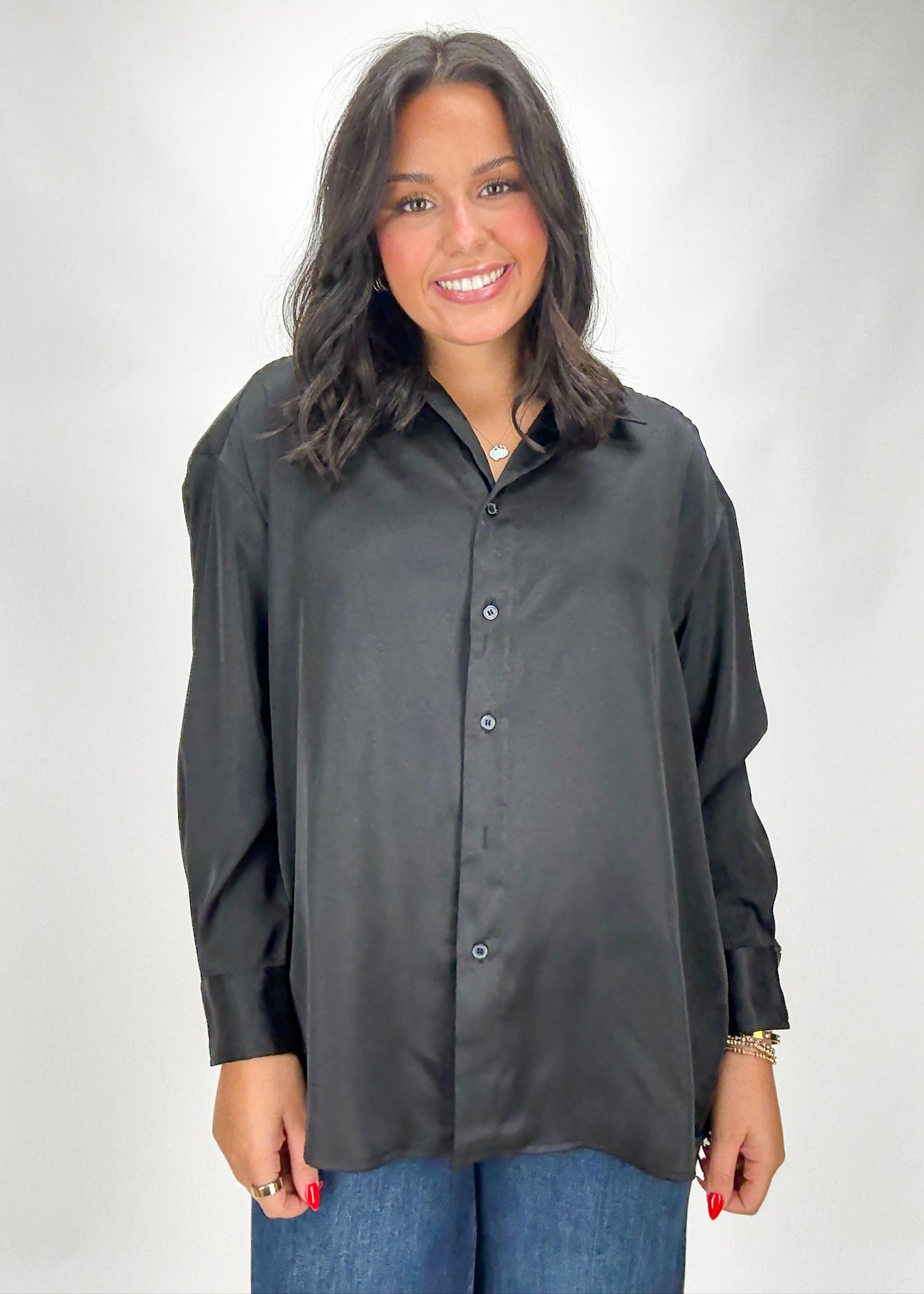 Add a pop of subtle charm to your capsule wardrobe with this classic black button down featuring lace detailing.
