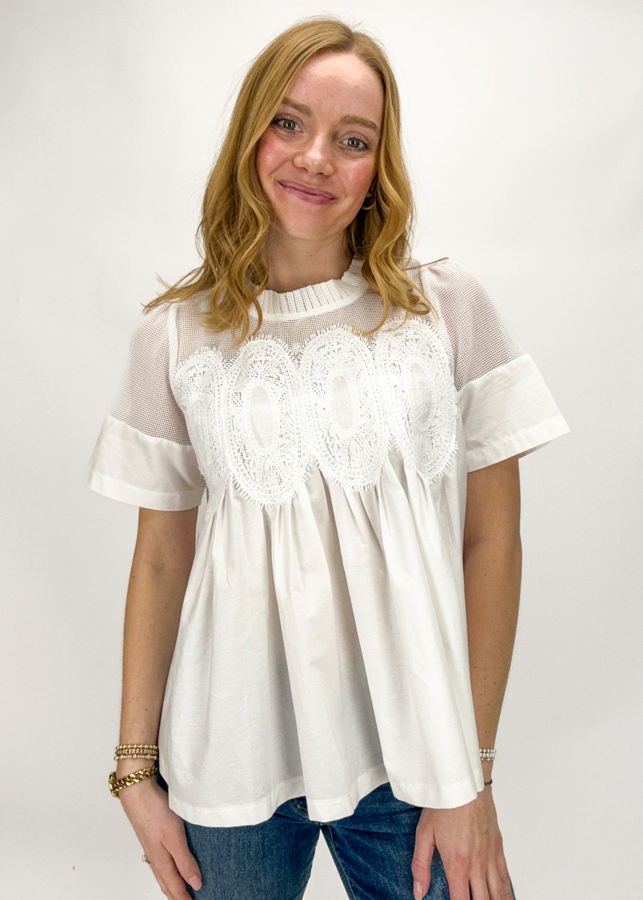 Elevate your spring wardrobe with this unique and stunning top! This short sleeve piece features a darling texture and ruffle design with a subtle ruffle neckline that adds the perfect pop of interest.