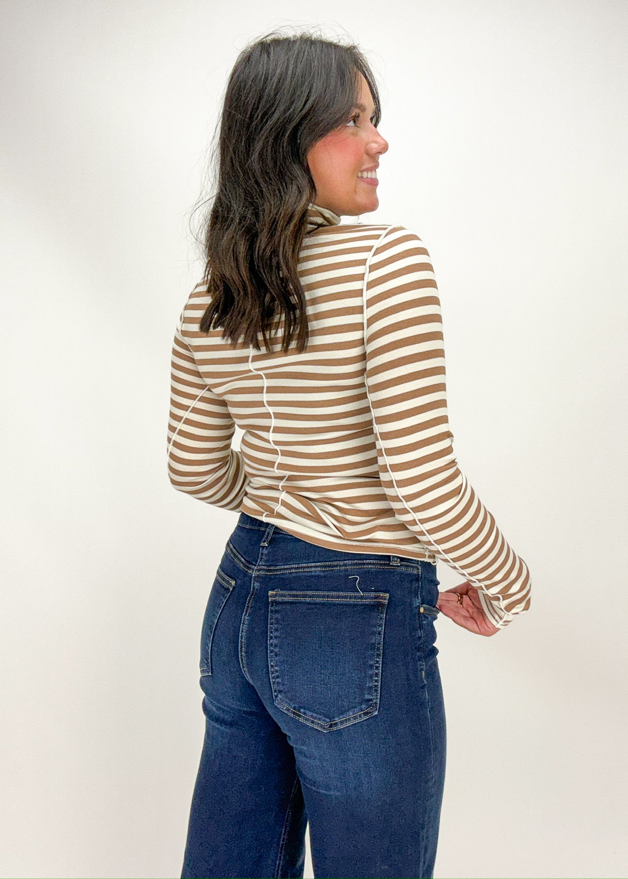 Free People Good Good Stripe Turtleneck - Otter/Tea