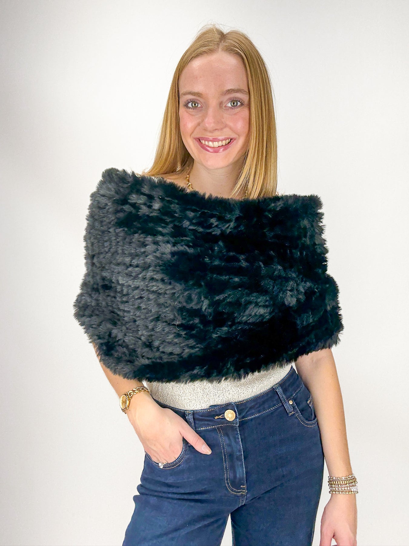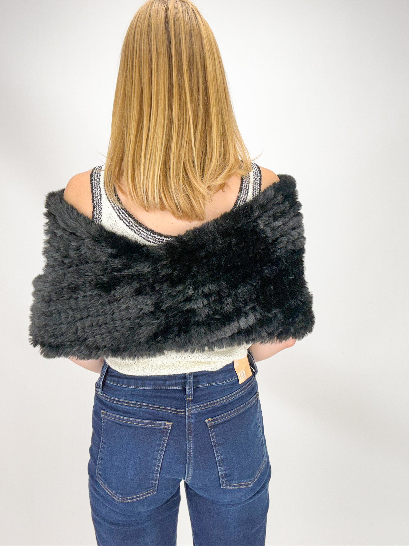 This cozy wrap comes in a black faux fur and is the perfect way to elevate your look. Throw this luxurious piece on over a dress for a chic, yet functional statement look.
