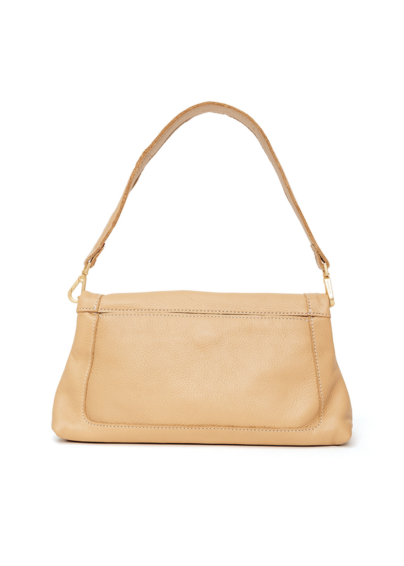 Accessorize your look with this luxurious and timeless tan handbag with brushed gold hardware. Carry through the seasons for a classy look.