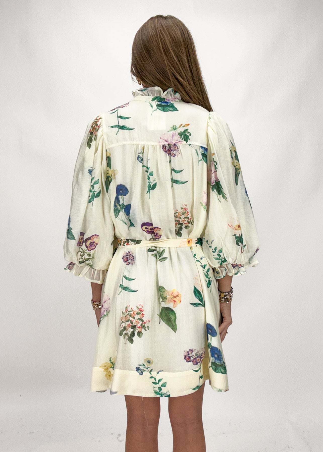 Step into spring in head turning fashion in this stunning floral mini dress. With 3/4 length puff sleeves and a large floral design, this piece is going to be a season favorite!