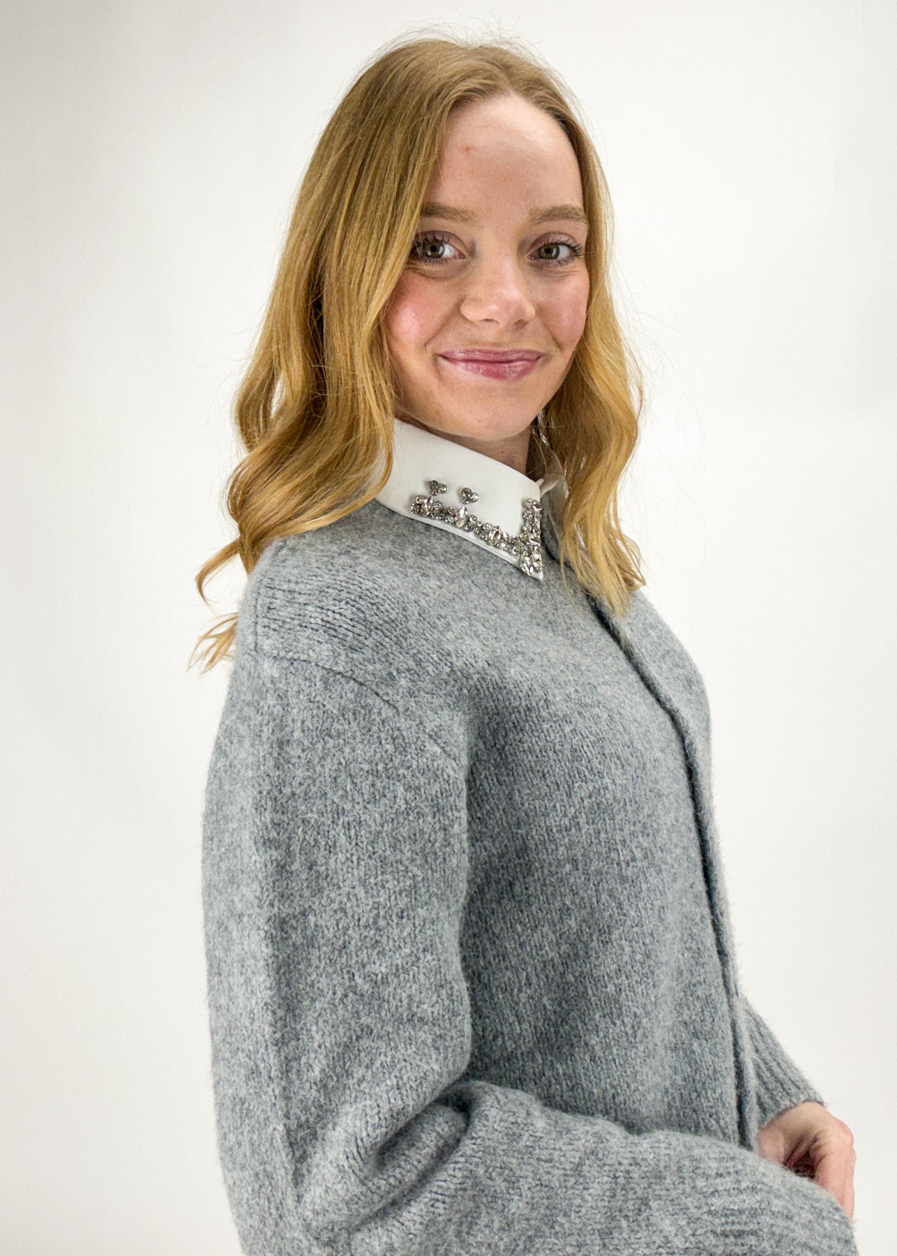 Elevate your look with this bold white layering dickey with rhinestone accents.