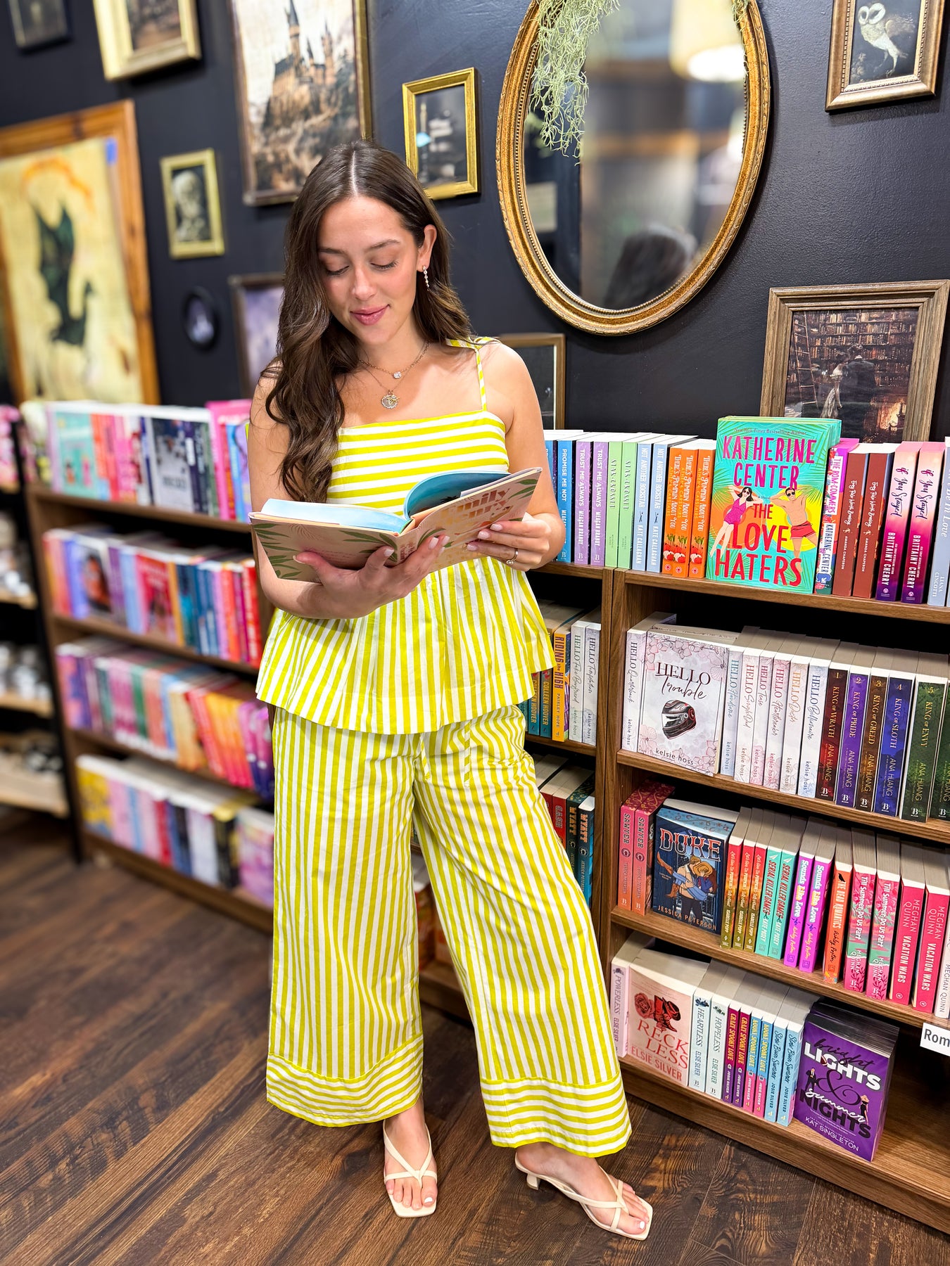 Whether you're headed to the beach or out with the girls, this lime green, striped top is just the piece to give your fun day a coordinating fun outfit.