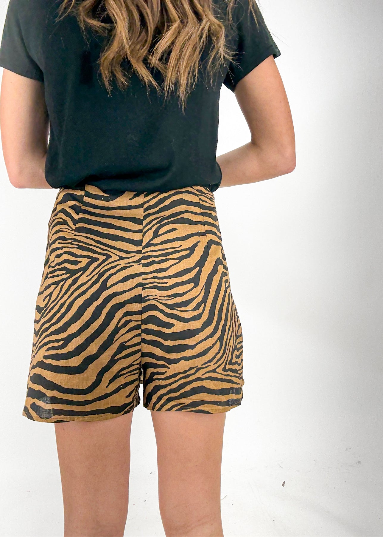 Elevate your wardrobe with this sassy mini skort. With a brown and black color combo, zebra print, and wrap style, this piece is the perfect subtle statement piece. Style it with an oversized sweater for a cozy yet classy look.