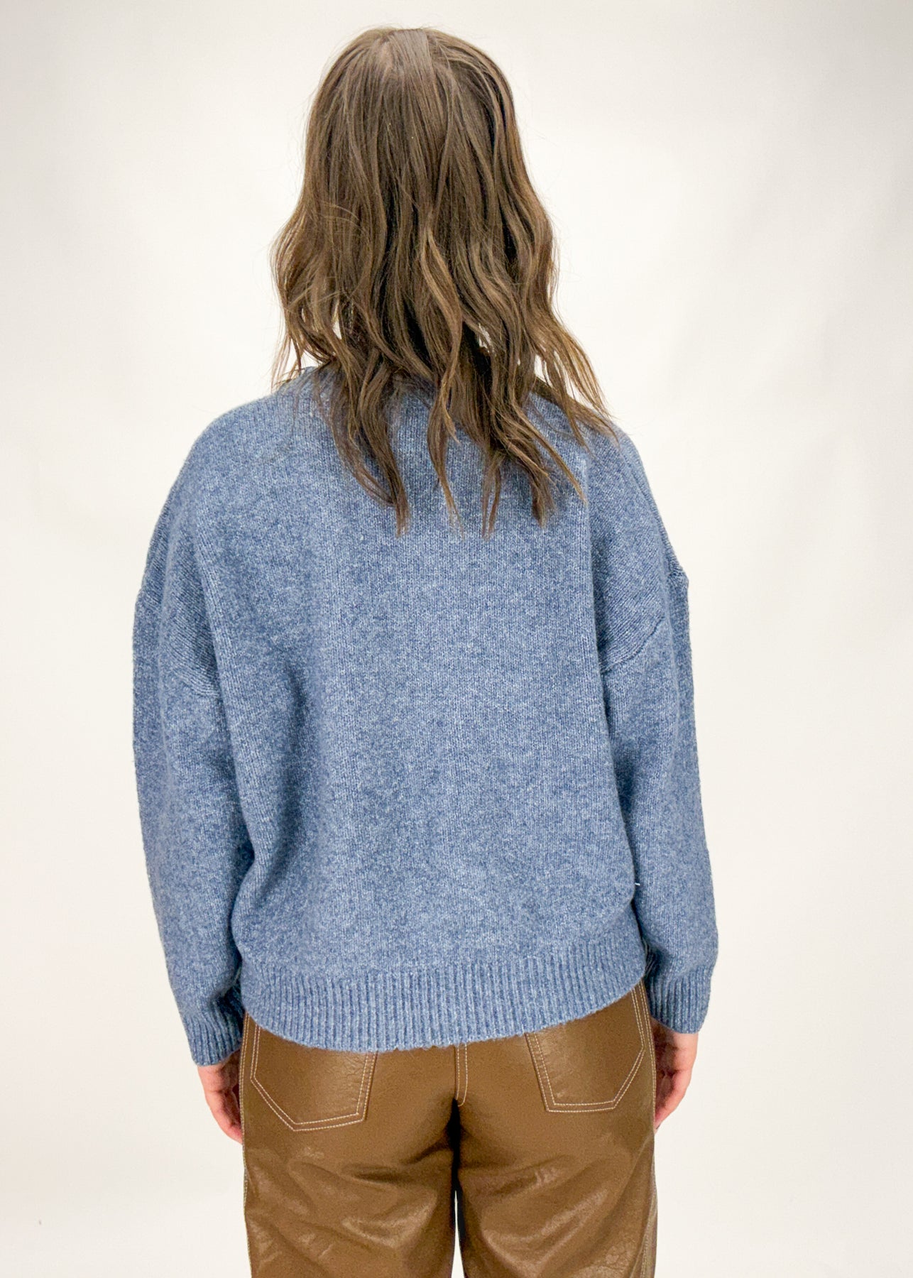 Your new go-to sweater has arrived! This lightweight knit comes in an antique blue color and features a dog graphic for a truly unforgettable look.