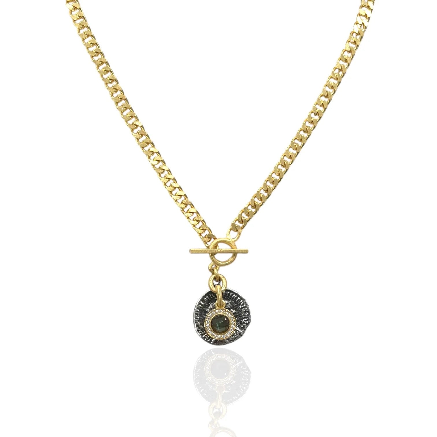 This necklace gives timeless elegance a modern twist. With silver coin and labradorite charms, what's not to love?