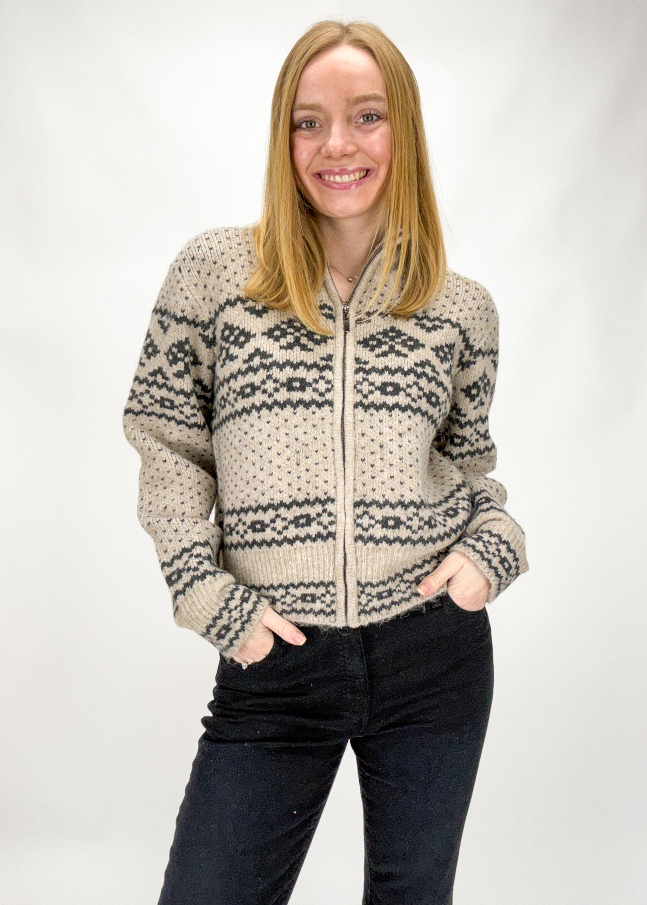 Add this neutral zip up cardigan to your wardrobe for endless layering options.
